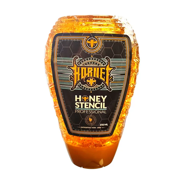 It’s not real honey (thankfully, or tattooing would get sticky!), but a stencil gel that looks and smells like honey—and it sticks just as well, keeping your stencil in place.